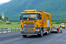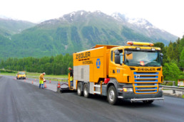 Einen gänzlich eigenen Weg gingen wir bei der Entwicklung von realisierbaren Alternativen zum herkömmlichen Unterhalt von Strassenbelägen. Auf der Suche nach energiesparenden und kostenoptimierten Methoden sanierungsbedürftige Strassen zu reparieren, begannen wir 1980 mit der Entwicklung von Kaltmikrobelagsverlegern und den speziell dafür konzipierten Mischgütern auf bituminöser Basis.