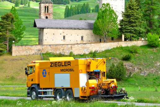 Die anfängliche Absicht ein weiteres Stück Pionierarbeit im schweizerischen Strassenbau zu leisten, entwickelte sich rasch dank vieler neuer Ideen weiter. Als unmittelbare Folge dieser Tatsachen entstand die Abteilung Microsil, welche ursprünglich ihren Namen aus den Wortteilen «micro» (mikro/winzig) und «seal» (Abdichtung/Dichtung) abgeleitet erhielt. Seit diesem Zeitpunkt widmen wir uns mit grossem Engagement der Konstruktion neuer, noch besserer Maschinen und damit noch effektiveren Kaltmikrobelägen. Dank unserem modernen Fuhrpark ist es uns möglich, sämtliche Anforderungen an die gültigen Immissionsgrenzwerte der Schweizerischen Luftreinhalte-Verordnung (LRV) einzuhalten.